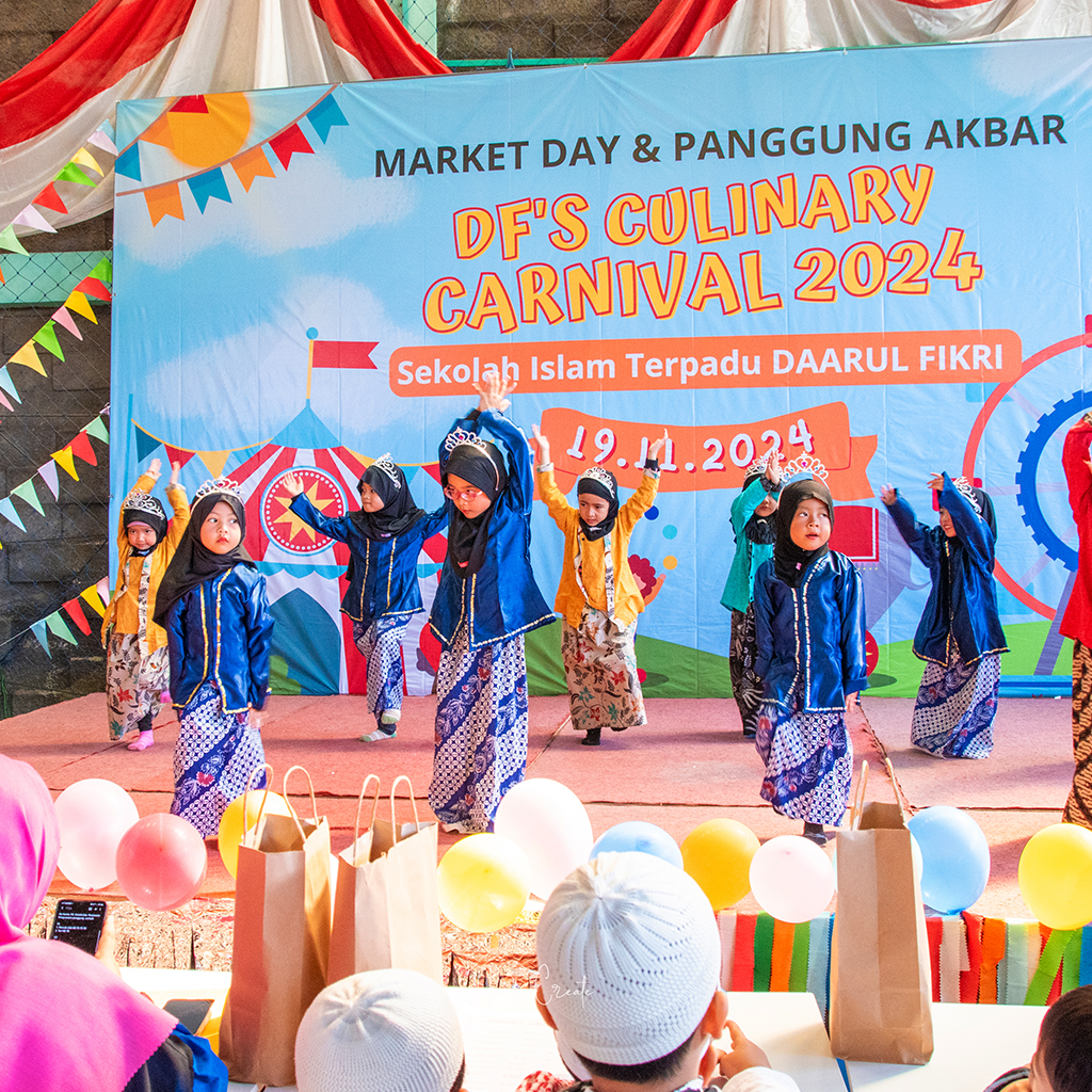 Pada acara Market Day & Panggung Akbar bertajuk DF’s Culinary Carnival 2024 yang diselenggarakan oleh Sekolah Islam Terpadu Daarul Fikri pada tanggal 19 November 2024, para siswa tampil dengan semangat dalam balutan busana tradisional yang memukau. Dengan gerakan tari yang penuh keceriaan, mereka berhasil menciptakan suasana panggung yang meriah dan menghibur para penonton. Acara ini tidak hanya menjadi ajang kreativitas anak-anak, tetapi juga momen untuk menumbuhkan rasa percaya diri dan kebersamaan. Dekorasi warna-warni dan antusiasme dari penonton semakin mempercantik perhelatan ini, menjadikannya pengalaman berharga bagi seluruh peserta dan keluarga yang hadir.
